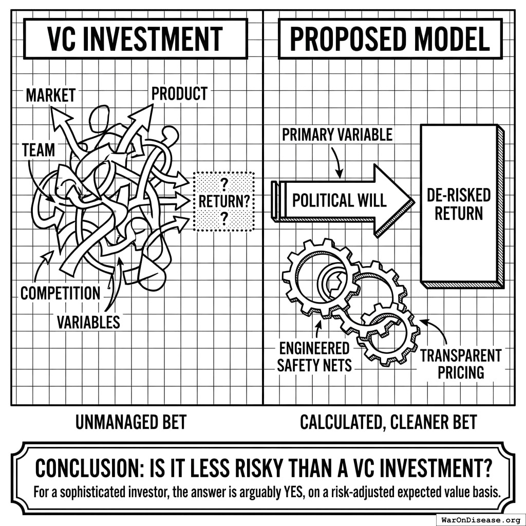 Your investors will ask: “Is this riskier than a normal startup investment?” The answer is no. The risk isn’t greater; it’s fundamentally different. And different, here, means better.