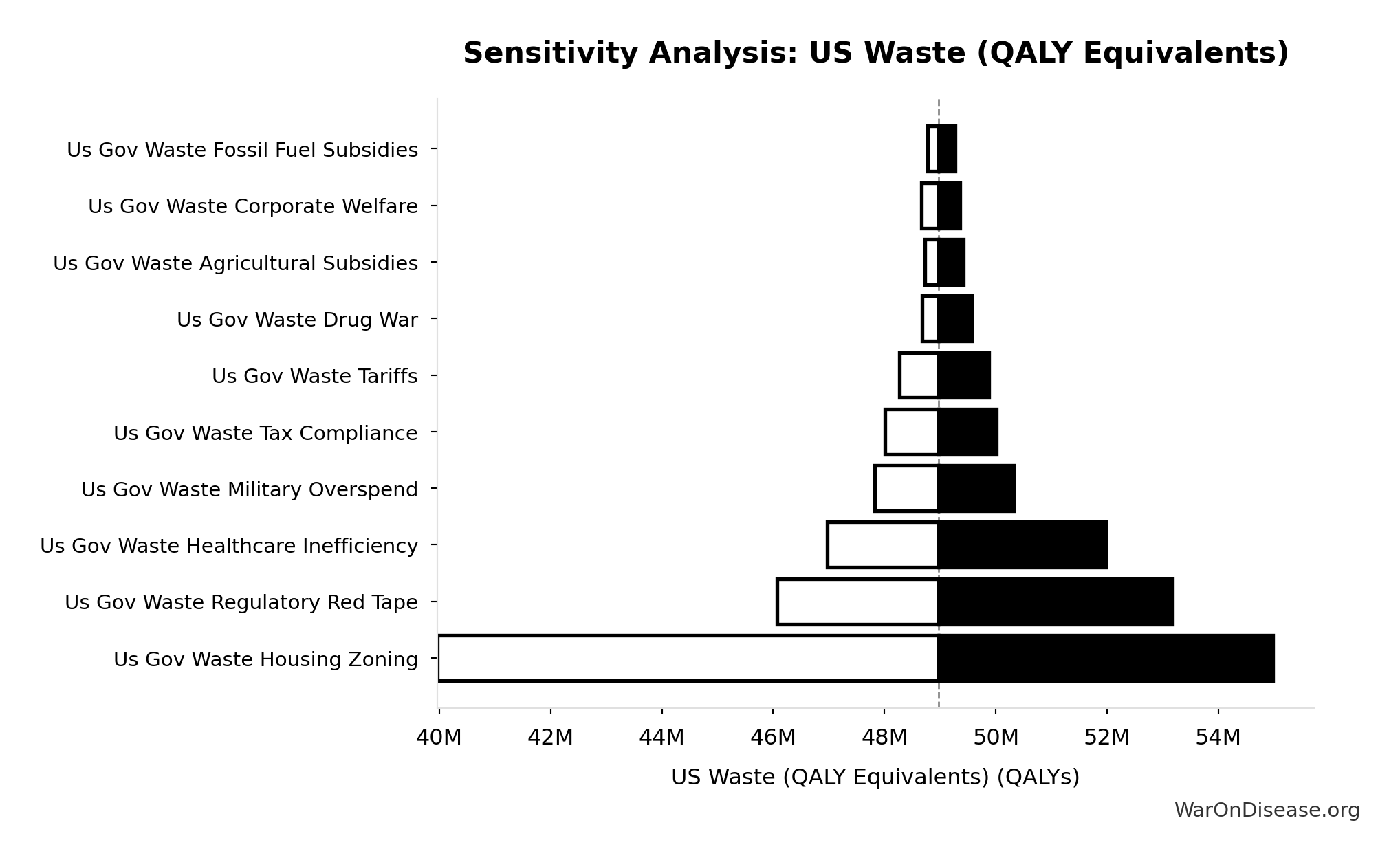 Overlap discount factor between US government waste categories. Set to 1.0 (no discount). Categories are treated as additive, recognizing that any overlap is offset by excluded categories (state/local inefficiency, implicit subsidies, behavioral effects).
