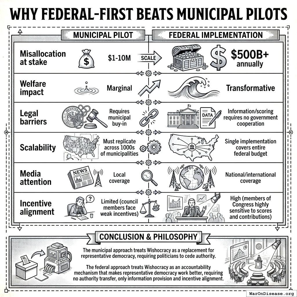 vTaiwan’s limitations (lack of binding authority, limited scope, and eventual political marginalization) provide crucial lessons. Wishocracy addresses these by proposing integration with actual budget allocation rather than advisory recommendations.